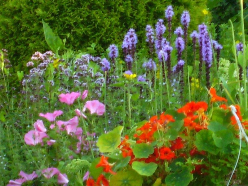 Besonders erholsam finde ich diesen Fleck Erde, wenn die Sonne scheint, Bienen, Hummeln und Schmetterlinge die bunten Blüten aufsuchen sowie Vogelgezwitscher zu hören ist.